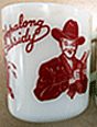 ROY ROGERS Standee. Large 6’¼" tall, 25" wide, full color standee. Very good condition for age and size. One original split in the middle (but two parts are still connected) for shipping. Says “Listen to the Roy Rogers Radio Show…”. Extremely hard to find! Obviously, this requires extra packing and shipping cost. $195